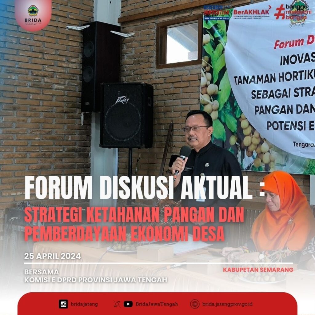 Pelaksanaan Kegiatan Sosialisasi Kebijakan Pembangunan Daerah dalam bentuk FDA dengan tema “Inovasi Budidaya Tanaman Holtikultura (Kelengkeng) Sebagai Strategi Ketahanan Pangan dan Pemberdayaan Ekonomi Desa”, Acara tersebut dilaksanakan pada 25 April 2024.