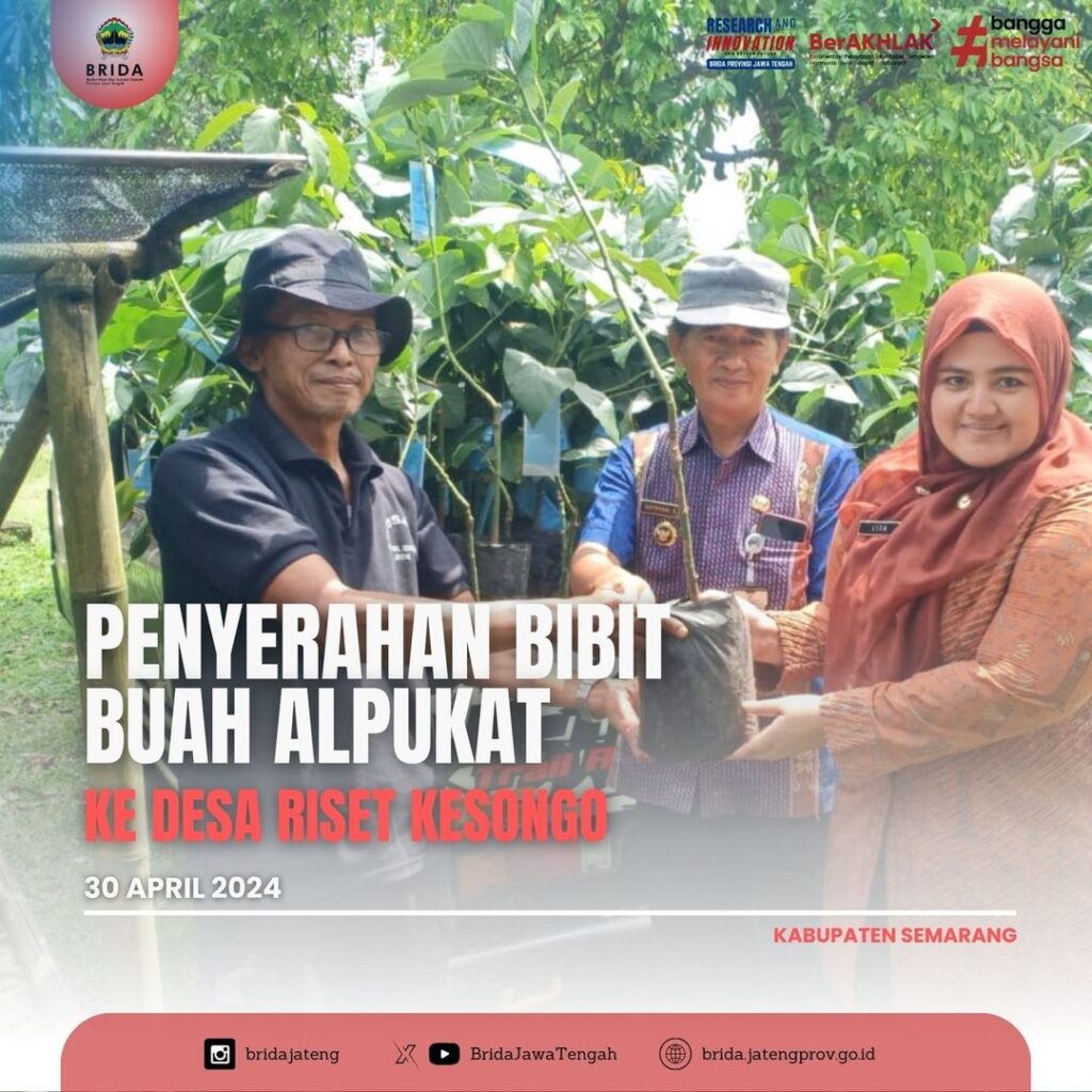 Sehubungan dengan hal tersebut Brida Provinsi Jawa Tengah melaksanakan pendampingan dan penyerahan bibit buah alpukat sebanyak 200 bibit dari Dinas Pertanian dan Perkebunan Prov. Jateng ke Kepala Desa Kesongo.