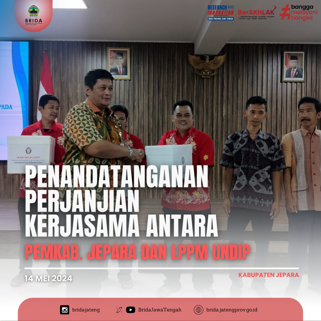 Kepala Brida Provinsi Jawa Tengah mengahadiri Penandatanganan perjanjian kerjasama antara Pemkab. Jepara dan LPPM UNDIP, bertempat di MSTP Jepara.Dihadiri oleh…